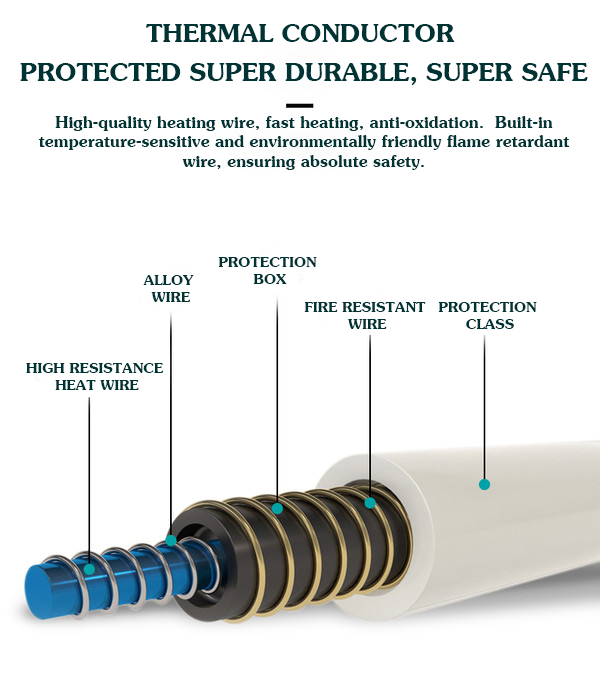High quality heating wire, 3-layer shielded, high strength bearing & good fire resistance. Fast heating, energy saving